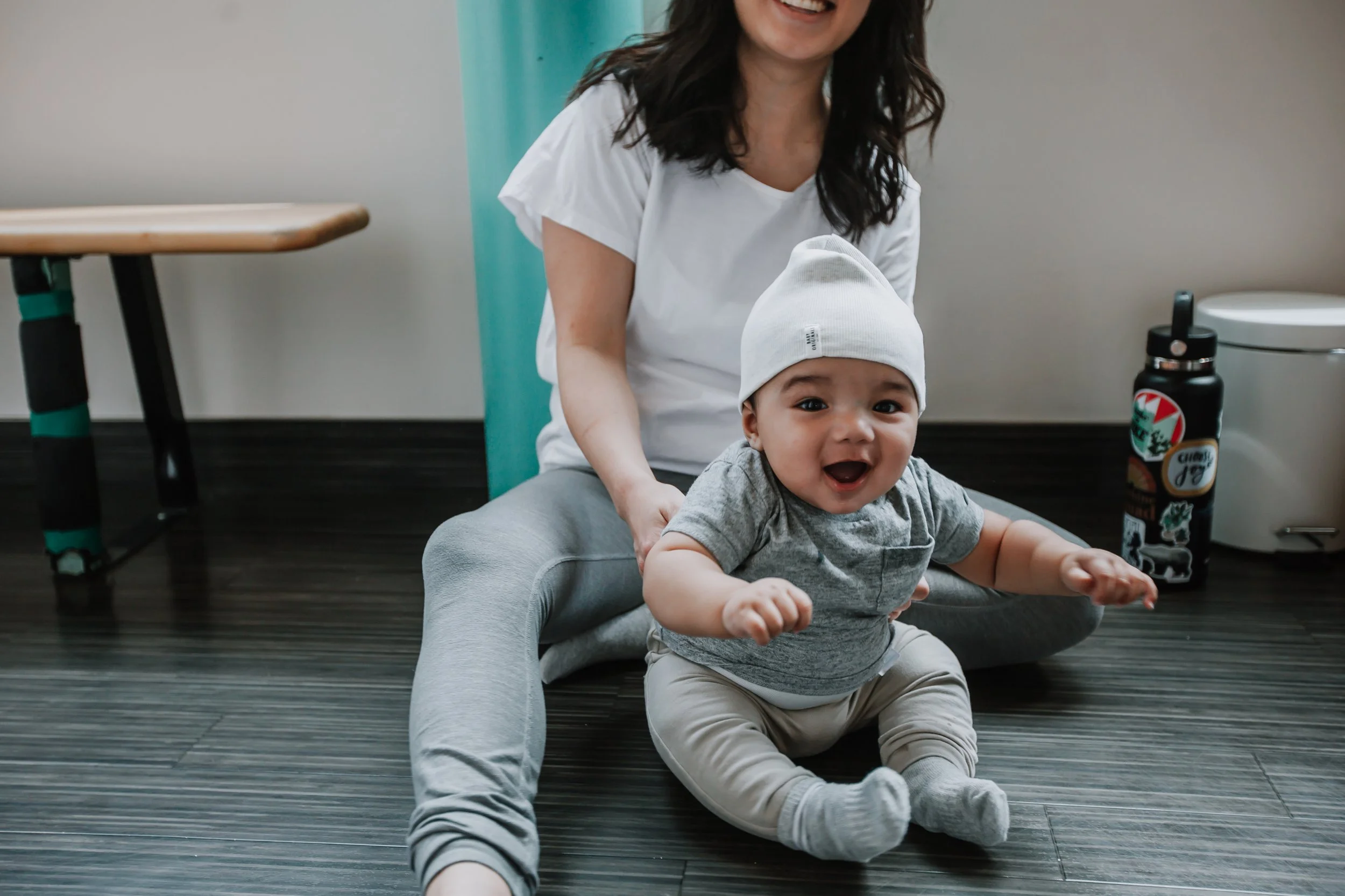 You may come to class and be able to do the whole practice from opening check-in right through to savasana while your baby sleeps or contentedly rests. Or you may come to lay down on your mat, get in a few down dogs, and then your baby needs you.
